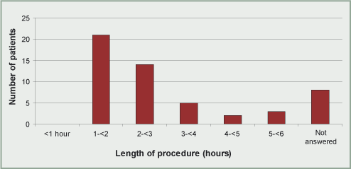 The length of procedure was calculated from the time of the first angiogram to groin closure. As can be seen the reported length of endovascular repair was very variable with some cases being very prolonged. Other interventions performed at the time of surgery included femoro-femoral crossover (3), internal iliac embolisation (3), additional cuff insertion (3), and other unspecified and infrequent procedures (4). Back to top |