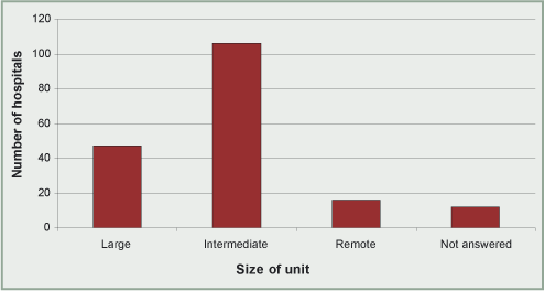 Hospital staff completing the organisational questionnaire were asked to classify the size of the vascular unit at their hospital as large, intermediate or remote: