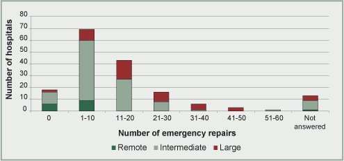 Figure 3. Number of emergency open repairs performed in year 2002/03 by size of unit n=181