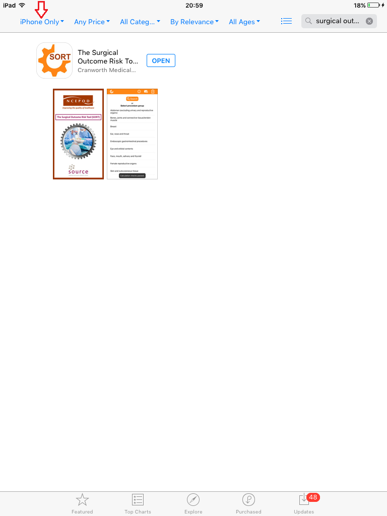 App Store (Operating system: iOS 9.1 or later required; Hardware: optimised for iPhone 5 or later. iPhone version works on iPad and iPhone touch). When downloading the app using an iPad, please select the ‘iPhone only’ option at the top left hand side of your tablet (Please click here for installation image).